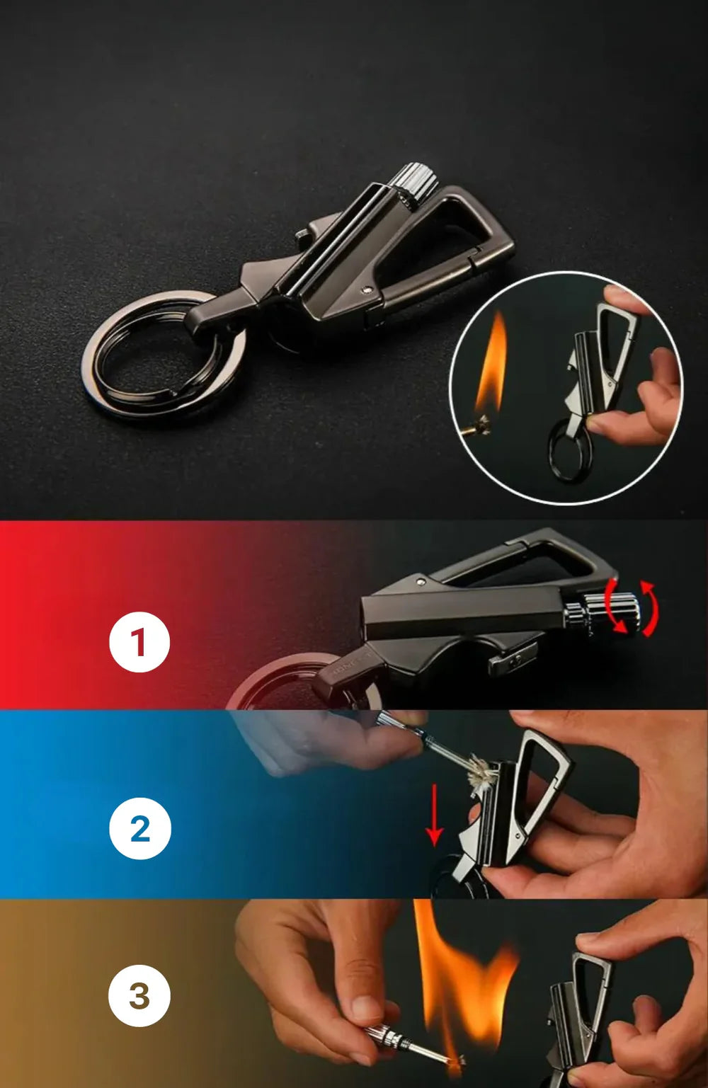 Aunque es un llavero, cuenta con una cerilla infinita integrada que siempre estará contigo, ¡lista para salvarte el día!